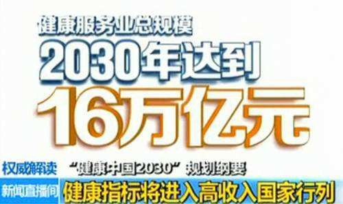 在16年印发的《“健康中国2030”规划纲要》中,“健康中国”正式上升为国家级发展战略。继互联网产业之后,大健康产业成为中国经济中备受资本关注的新动力。