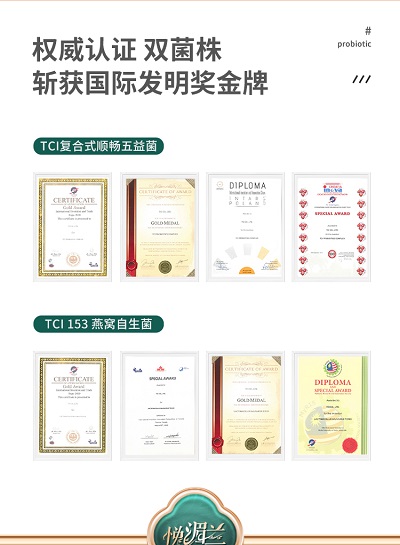 权威认证双菌株:TCI复合式顺畅五益菌、TCI 153 燕窝自生菌