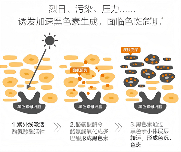 这才是春天的重头戏。紫外线照射皮肤后,黑色素细胞接收到“警报”,开始加班加点生产黑色素。但这个生产过程需要时间——通常是72小时左右。