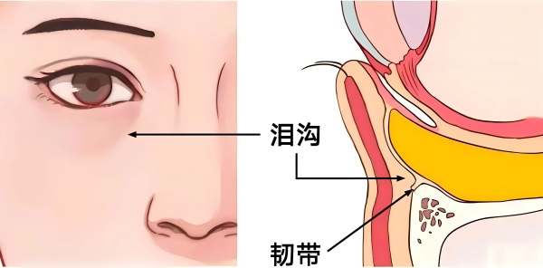 - 泪沟:是“缺失了东西”。是从内眼角开始,出现在下眼睑靠鼻侧的一条凹沟,像一个“小阴影”或“八字纹”,让你看起来憔悴、疲惫。